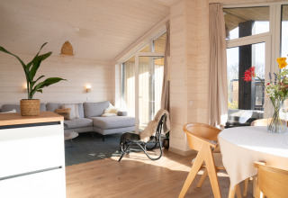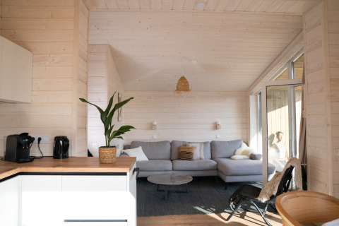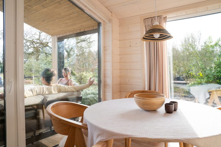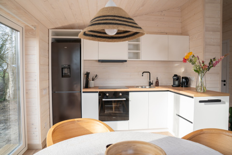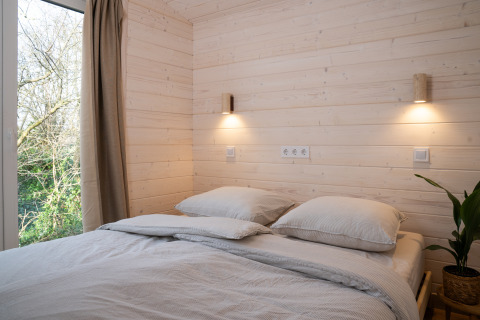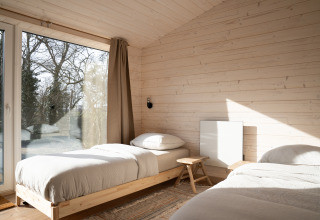 Ontdek rust aan de bosrand in deze luxe houten lodge van 60m², licht en duurzaam ingericht met Scandinavische eenvoud. Geniet van een master bedroom met tweepersoonsbed en een tweede slaapkamer met twee eenpersoonsbedden, allemaal voorzien van comfortabele Emma-matrassen. De volledig uitgeruste keuken met kookplaat, koelkast, vaatwasser en Greenpan® pannen maakt het bereiden van maaltijden eenvoudig. Ontspan in de knusse zithoek of aan de eettafel met uitzicht op het groen, en begin de dag met koffie op de eigen veranda. Gratis Wifi, privé sanitair, elektrische kachels, bedlinnen, handdoeken en rookvrije omgeving maken het verblijf compleet. Perfect voor gezinnen, vrienden of koppels die willen vertragen, wandelen, mediteren of gewoon genieten van de stilte van de natuur.