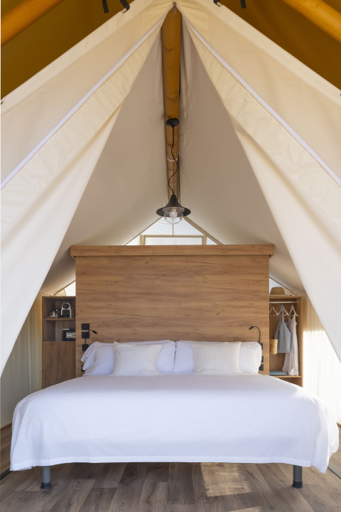 Beleef een probleemloze glamping ervaring voor twee, strategisch gelegen in een gebied waar alleen volwassenen kunnen overnachten. Vergelijkbaar met een hotel, maar dan beter: met airconditioning, privébadkamer, bedlinnen en handdoeken inbegrepen. Ook heeft het verblijf een magnetron en koelkast. Geniet buiten op het gemeubileerde privé terras van de natuur, met een kop koffie of een glas wijn.