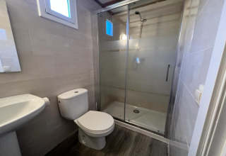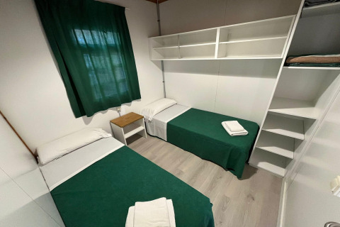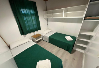 De bungalow heeft twee knusse slaapkamers, elk met een eenpersoonsbed – ideaal voor een goede nachtrust na een dagje de kust ontdekken. Met airconditioning voor warme zomerdagen en verwarming voor koelere avonden, voel je je hier altijd comfortabel, welk seizoen het ook is. Er is daarnaast een praktische badkamer en ruimte voor maximaal vijf gasten, zodat iedereen lekker kan ontspannen.