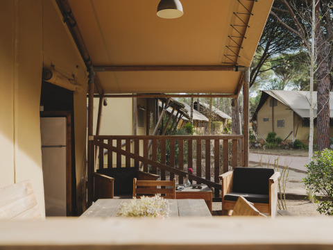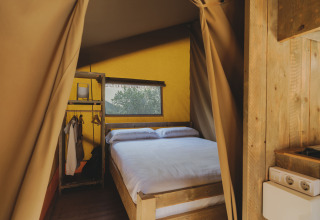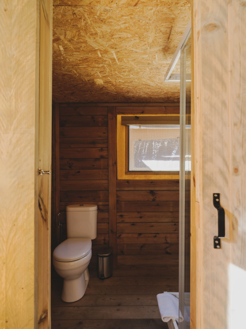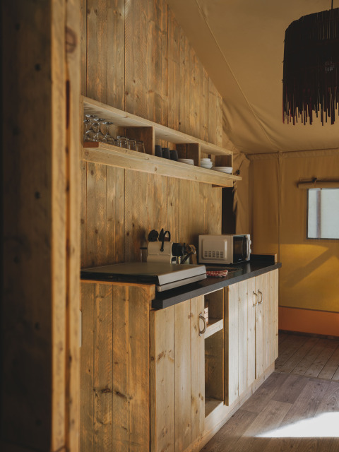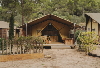 Beleef de Lodge Montgó, waar de authenticiteit van kamperen wordt gecombineerd met alle essentiële gemakken. Met plaats voor maximaal 5 personen beschikt het over twee slaapkamers: één met een tweepersoonsbed en één met een eenpersoonsbed en een stapelbed, een complete badkamer en een keuken met koelkast, 4 gaspitten, elektrische koffiemachine, gootsteen, servies en keukengerei.