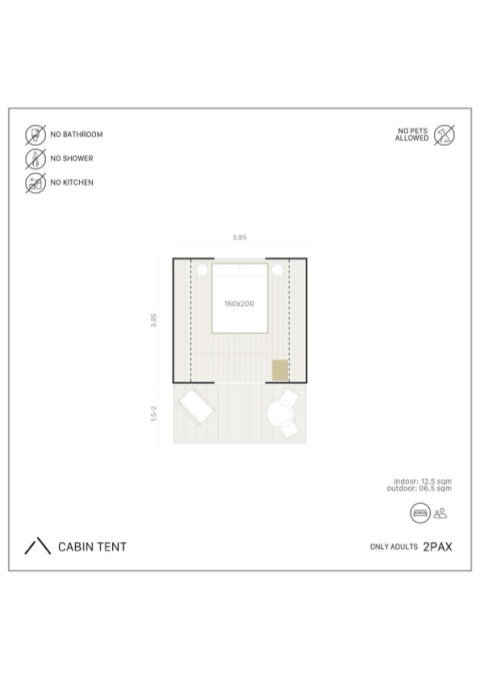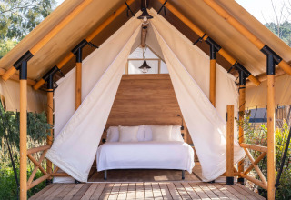 Er is een ruim en comfortabel tweepersoonsbed op een houten vloer. Het bed is opgemaakt bij aankomst en handdoeken zijn ook inbegrepen. De tent heeft geen keuken of eigen badkamer; maar maak je geen zorgen, er zijn openbare toiletten op slechts een paar meter van de tent.