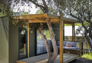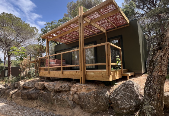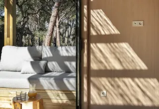 De Mobile Home Family heeft twee goed ingerichte slaapkamers: een met een tweepersoonsbed en de andere kamer met drie bedden in de vorm van een stapelbed. Er is airconditioning voor een aangenaam binnenklimaat, ongeacht de temperaturen buiten. Daarnaast kunt je genieten van een gezellig terras met een gemeubileerde veranda, ideaal om te ontspannen in de schaduw.