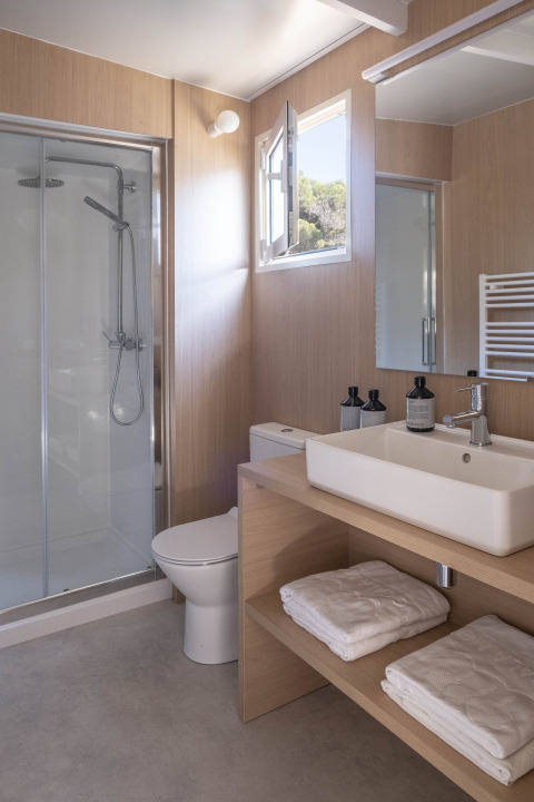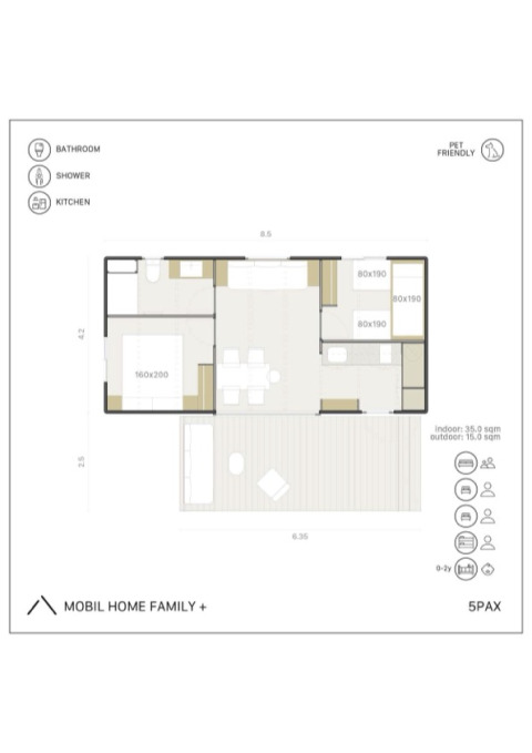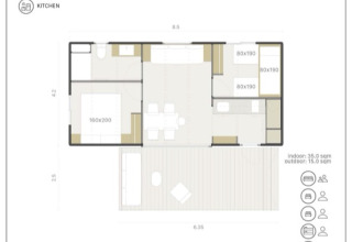 De Mobil Home Family is de perfecte keuze voor je vakantie met het gezin of een groep vrienden, zorgvuldig ontworpen voor maximaal 5 personen. Deze moderne stacaravan bied een gedetailleerd en ruim interieur voor jouw comfort.
