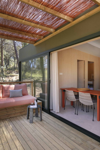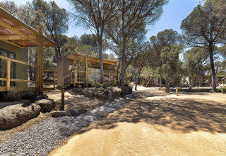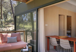 De Mobile Home Family heeft twee goed ingerichte slaapkamers: een met een tweepersoonsbed en een met twee eenpersoonsbedden. Er is airconditioning voor een aangenaam binnenklimaat, ongeacht de temperaturen buiten. Daarnaast kunt je genieten van een gezellig terras met een gemeubileerde veranda, ideaal om te ontspannen in de schaduw.
