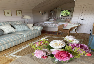 Terug in je cabin is alles ingericht voor comfort en gemak. Binnen vind je een comfortabele tweepersoons ottomanbed en een tweepersoons slaapbank, een en-suite douche, en een volledig uitgeruste kitchenette zodat je zelf kunt koken wanneer je wilt. De cabin is perfect voor stellen, kleine gezinnen of vrienden op zoek naar een knus toevluchtsoord op het platteland.