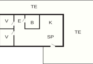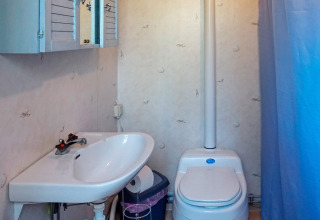 De cottage ligt op een rustig hoekperceel in een klein, vredig vakantiehuisgebied. Binnen is alles slim ingedeeld en voelt het licht en welkom aan. Je komt binnen via een kleine hal met ruimte voor jassen en schoenen. Direct daarnaast bevindt zich de badkamer met douche, toilet en wastafel – praktisch en eenvoudig voor het dagelijkse vakantieleven.