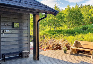 Buiten ligt de woning op een zonnig, afgelegen perceel aan het einde van een zandweg, met een prachtig uitzicht over Svarstad. Er is een ruim terras en meerdere zitplekken rondom de woning, plus tuinmeubilair en een barbecue. Je hebt 's ochtends zon in het zuidoosten en 's avonds zon in het west-noordwesten – ideaal voor een langzame koffie bij zonsopkomst en een drankje bij zonsondergang.