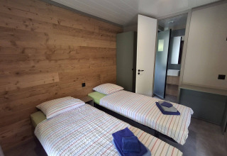 Dit moderne chalet hotel, biedt een comfortabel verblijf in een rustige en natuurlijke omgeving. Binnen vind je een lichte woonruimte met zithoek en een open keuken, uitgerust met een inductiekookplaat, vaatwasser, koelkast en diepvries, waterkoker en magnetron. De accommodatie beschikt over twee slaapkamers, elk met een eigen badkamer met douche en wastafel en een apart toilet, wat zorgt voor extra privacy en gemak tijdens je verblijf.